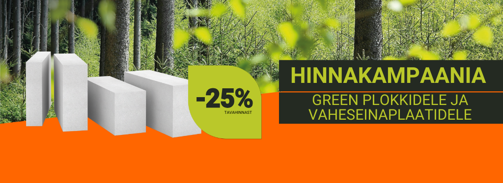 Hea uudis! Keskkonnasõbralik ehitamine ei pea olema kallis. Talv on sisetööde aeg ja siseseinte ehitamiseks saad nüüd kasutada eriti soodsa hinnaga bauroc GREEN vaheseinaplaate ja plokke. Loomulikult on ka talvel võimalik ehitada välisseinu, kasutades talviseid liimsegusid ja kampaaniahinnaga GREEN plokid sobivad välisseinte ehitamiseks väga hästi. Odavale hinnale lisaks on täiendavaks boonuseks bauroc GREEN seinaehitusmaterjalide rekordiliselt madal keskkonnamõju.